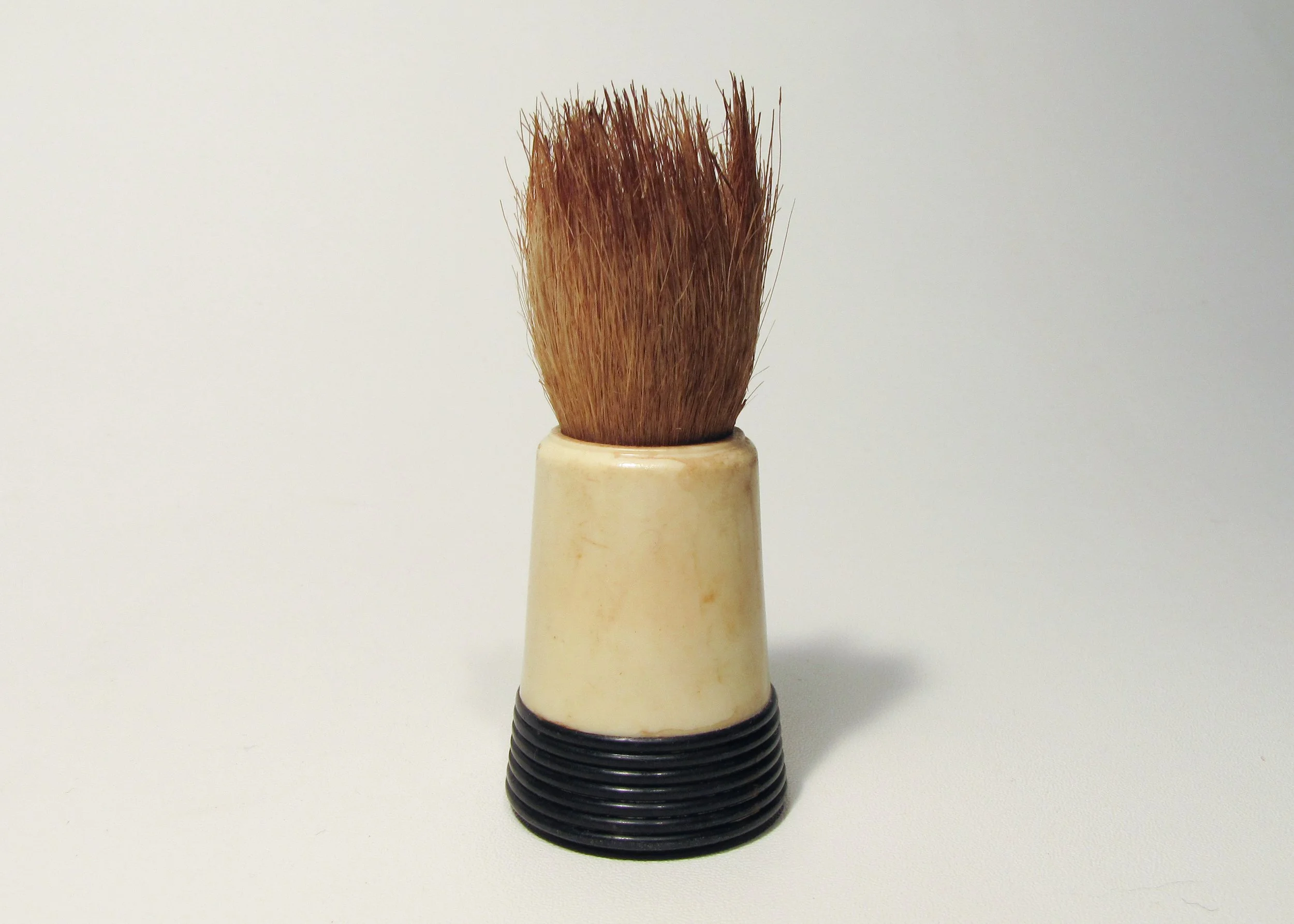 Achieving a clean-shaven face was not without its challenges, however. Many reports circulated in newspapers during the war that shaving brushes (pictured below) posed a major health risk to men on the front lines. Anthrax, an aggressive bacterial disease that can be passed from some farm animals to humans, infected and killed soldiers who had used contaminated brushes to apply shaving soap. An enquiry led by Dr. Francis Coutts revealed that the disease was being spread via cheap shaving brushes made from horse hair which had not been properly disinfected.[20] In a newspaper report from 1917, the British War Office accused a Montreal drug company of supplying infected brushes produced in the United States.[21] The fight against anthrax continued following the war, with horse bristle shaving brushes remaining a major problem for soldiers and civilians.[22]