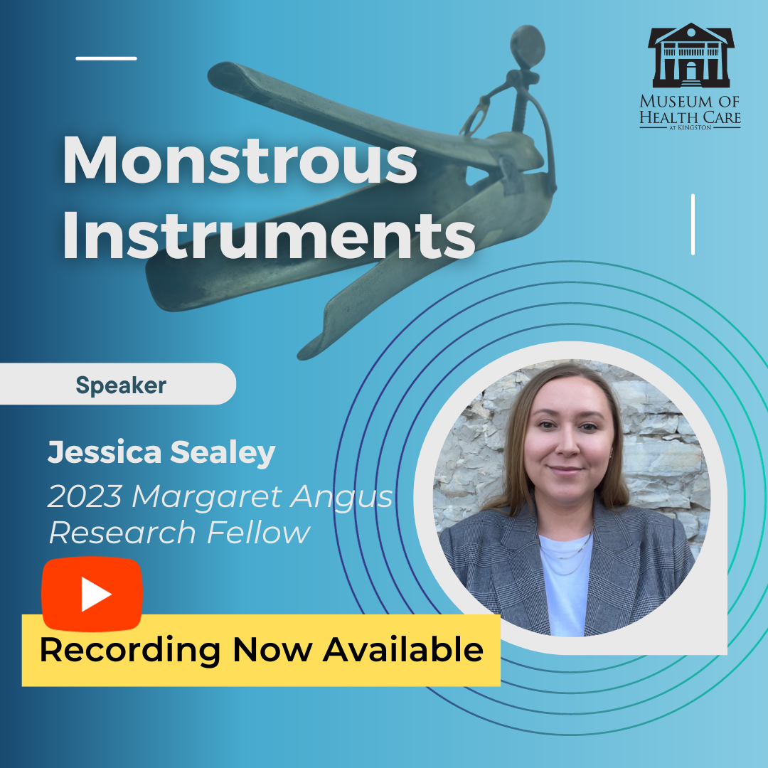 Originally recorded on November 19th, 2023, Jessica's Sealey's lecture Monstrous Instruments: The Vaginal Speculum and the Contagious Diseases Acts Repeal Movement is now available for viewing on the Museum of Health Care's YouTube Channel. You can also access the full manuscript of Jessica's project on the Museum's website.