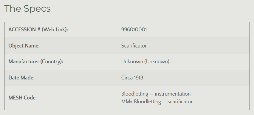 Although scarificators were usually used in conjunction with cupping, there is evidence they were also sometimes used by physicians other purposes. Long after the use of scarificators for bloodletting had gone out of fashion in Western medicine, Dr. Howard Box and Dr. G.S. Cronk employed this instrument for smallpox vaccinations in China in 1918.