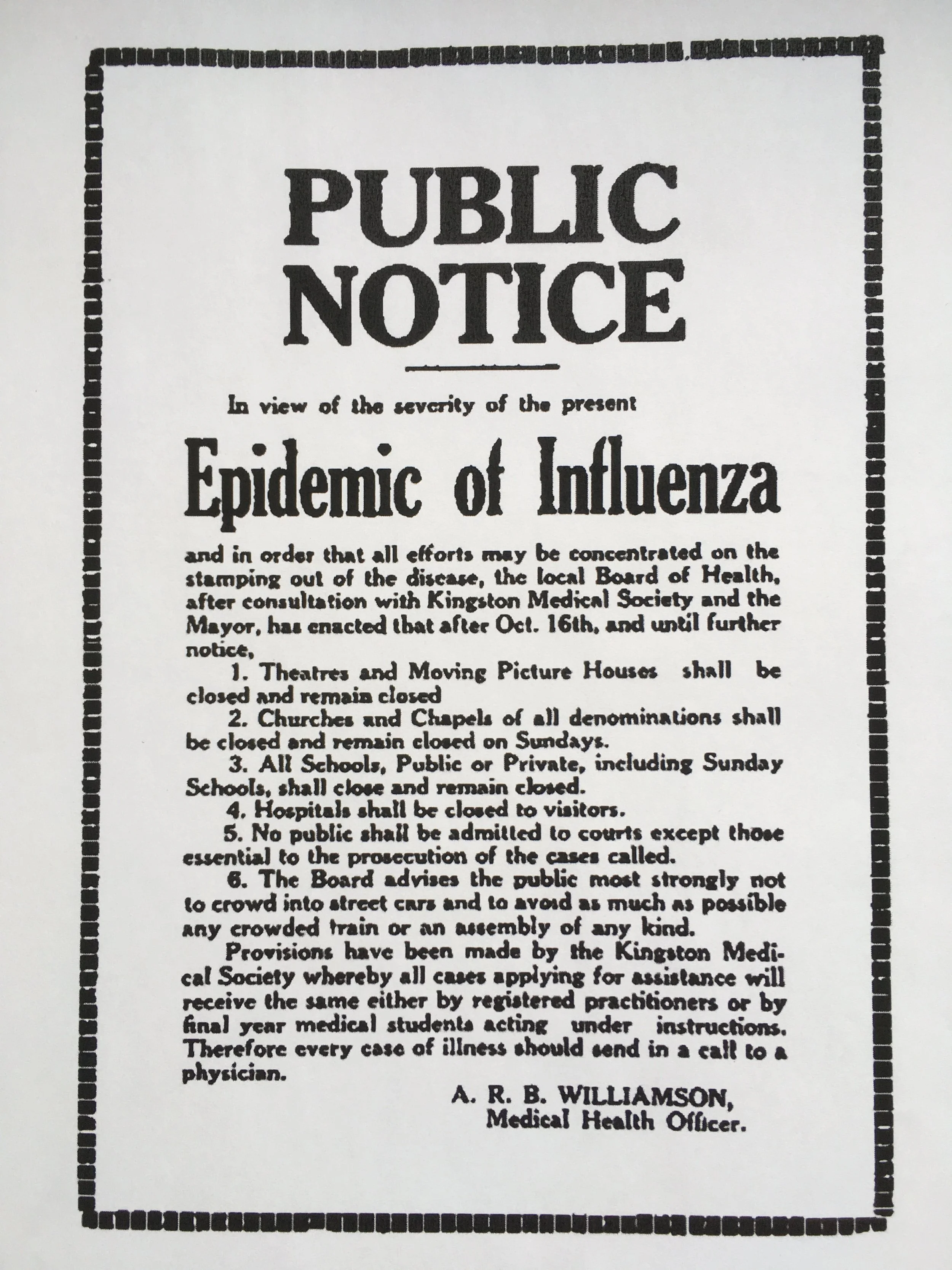 The Reality of the Flu: Kingston's United Effort Against the Spanish Influenza