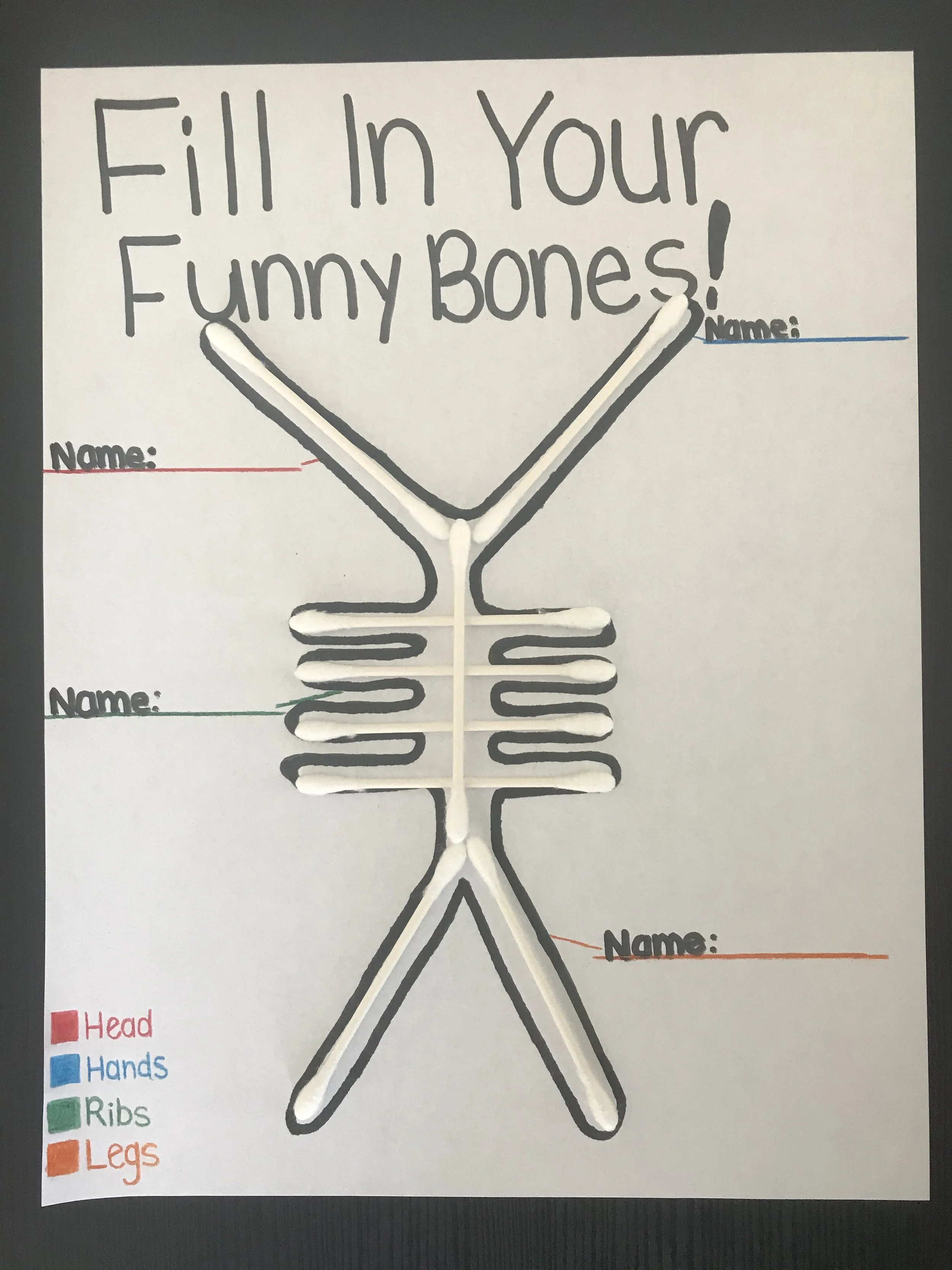 Students will apply their knowledge of the structure (bone type) and function of four major bone structures (skull, ribs, hands, femur) in this activity. Encourage students to recreate the four major bone structures in their skeletons at a Grade level appropriate amount of detail.