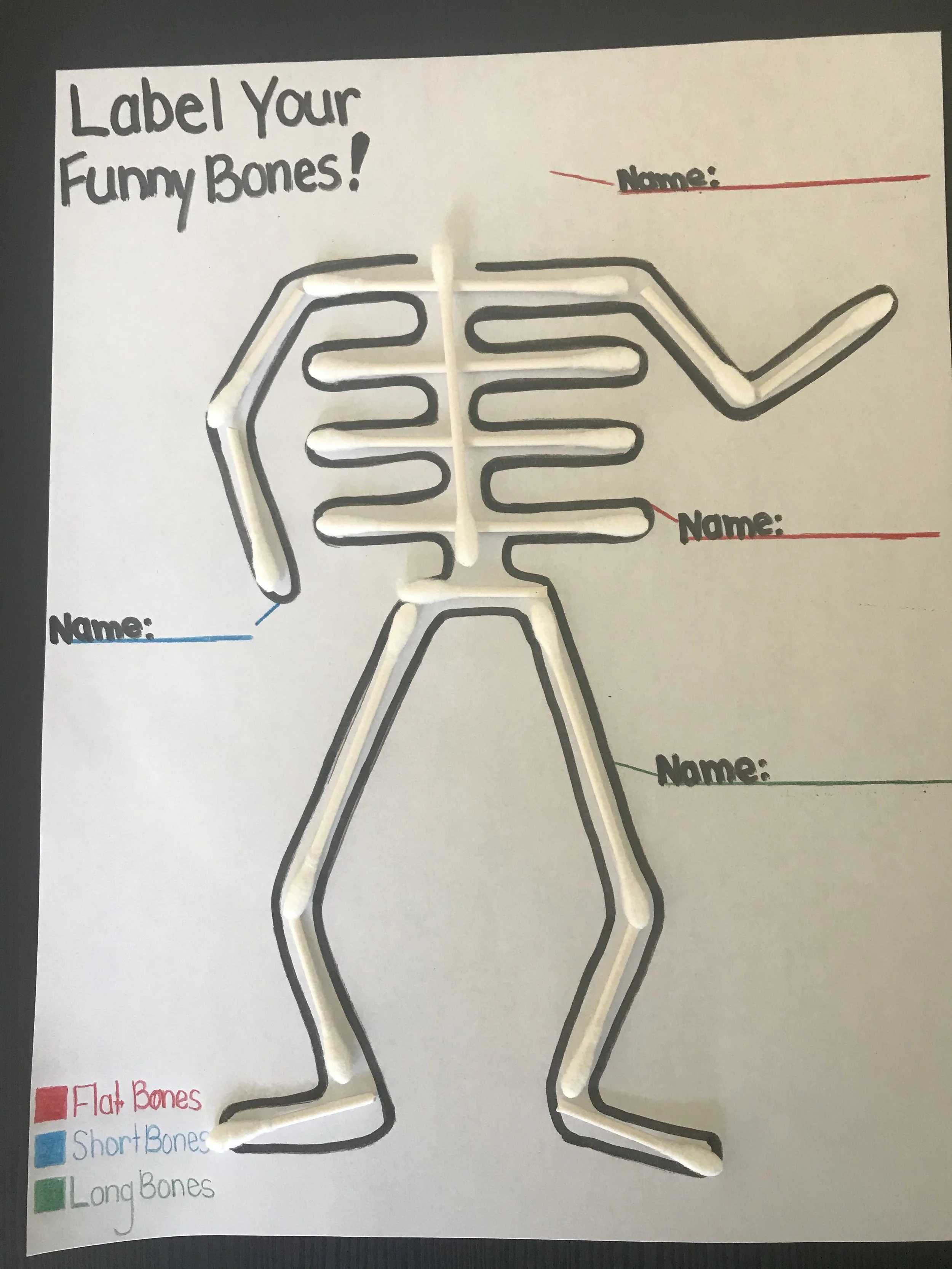 Students will apply their knowledge of the structure (bone type) and function of four major bone structures (skull, ribs, hands, femur) in this activity. Encourage students to recreate the four major bone structures in their skeletons at a Grade level appropriate amount of detail.