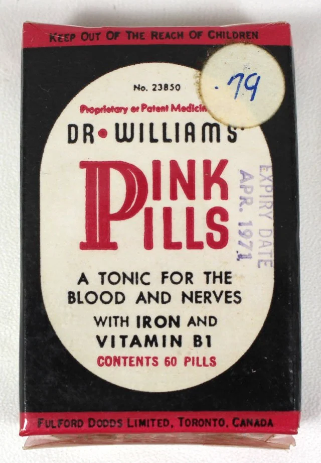 Fulford and Co’s most famous remedy-- and the one which solidified the wealth and status of George Taylor Fulford-- was Dr. Williams’ Pink Pills for Pale People, the patent for which Fulford bought from Brockville doctor William Frederick Jackson in 1890. He advertised the pills very widely and cleverly, using patient testimonials in advertisements that look like little newspaper articles.