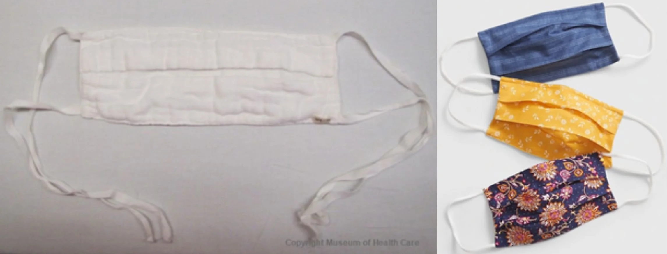 The history of the masks that we wear have their roots in a few different areas, including both from the medical community, as well as from the Personal Protective Equipment of firefighters and soldiers in the late 19th and early 20th century. The first surgical mask came in 1899 when Carl Flügge (1847-1923) was working on tuberculosis research when he developed his droplet theory of infection. This theory proved that microorganisms can be expelled as droplets from the respiratory tract and reach another person. Flügge, his pupils, and successors conducted further experiments to determine that droplets are especially expelled during activities of talking, coughing, blowing, and sneezing.
