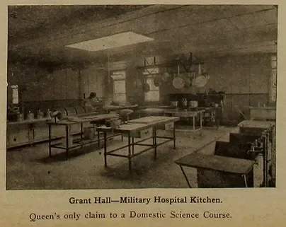 Grant Hall kitchen: “Grant Hall; Then and Now.” Queen’s Journal (Kingston, ON), Jan. 15, 1918.