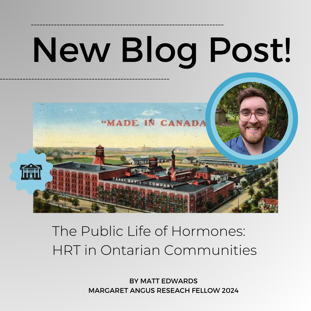My project for this summer’s Margaret Angus Research Fellowship will try to unearth some of this history, looking at hormones’ incorporation into physicians’ education, hospitals, and peoples’ daily lives. By investigating the education of physicians at Queen’s medical school, records of their practice and training, news sources like the ones considered here, and 2SLGBTQI+ community records and ephemera, I will be looking into the local history of HRT in Kingston and Ontario more generally.
